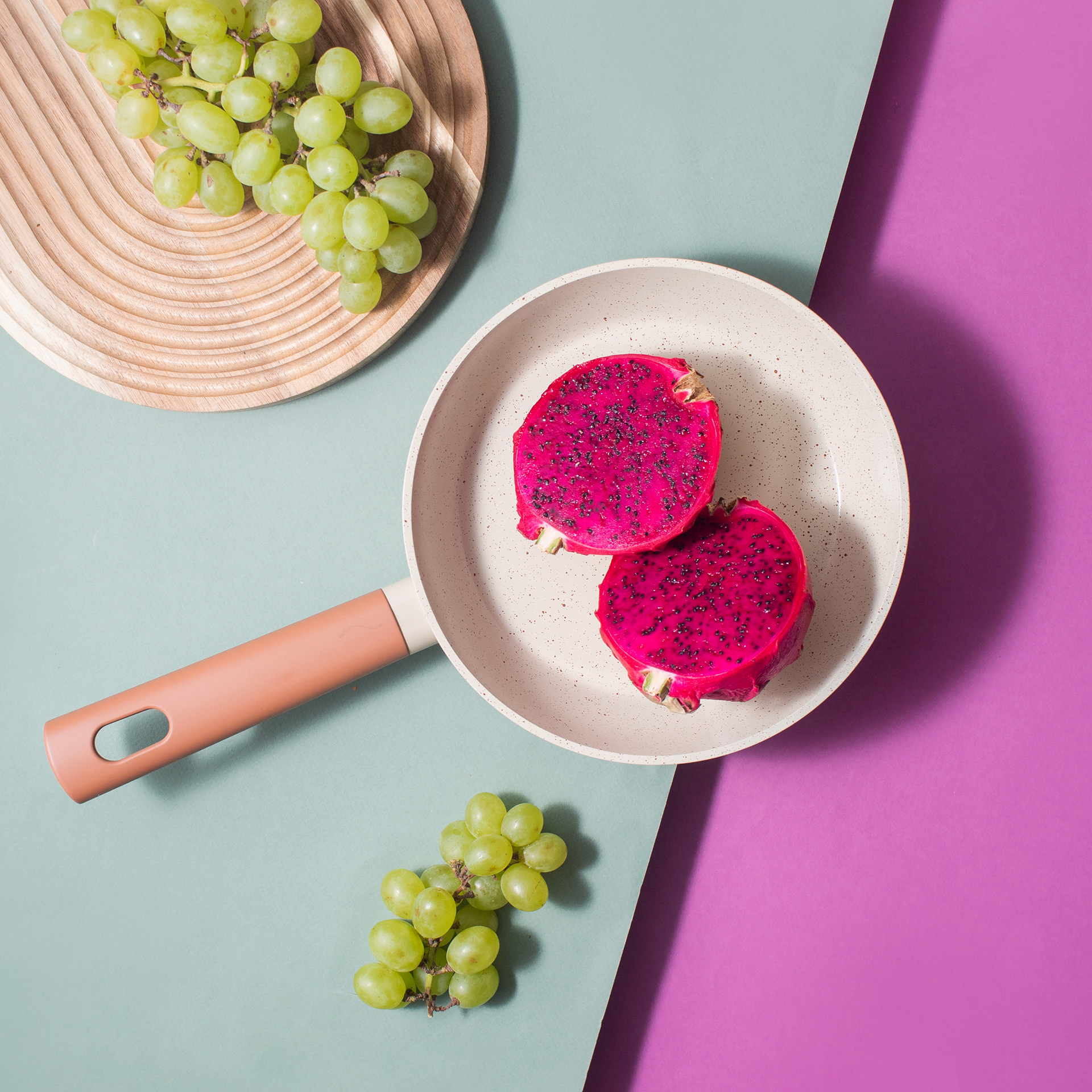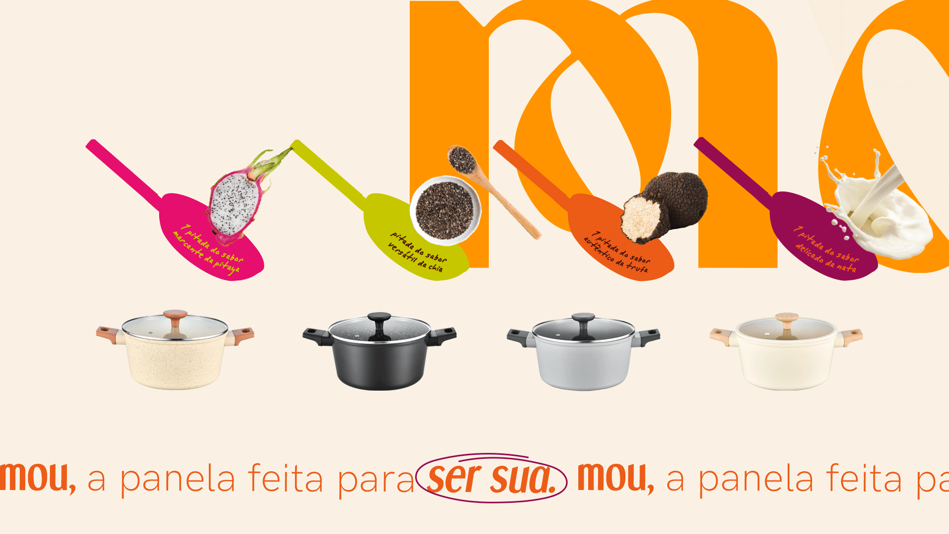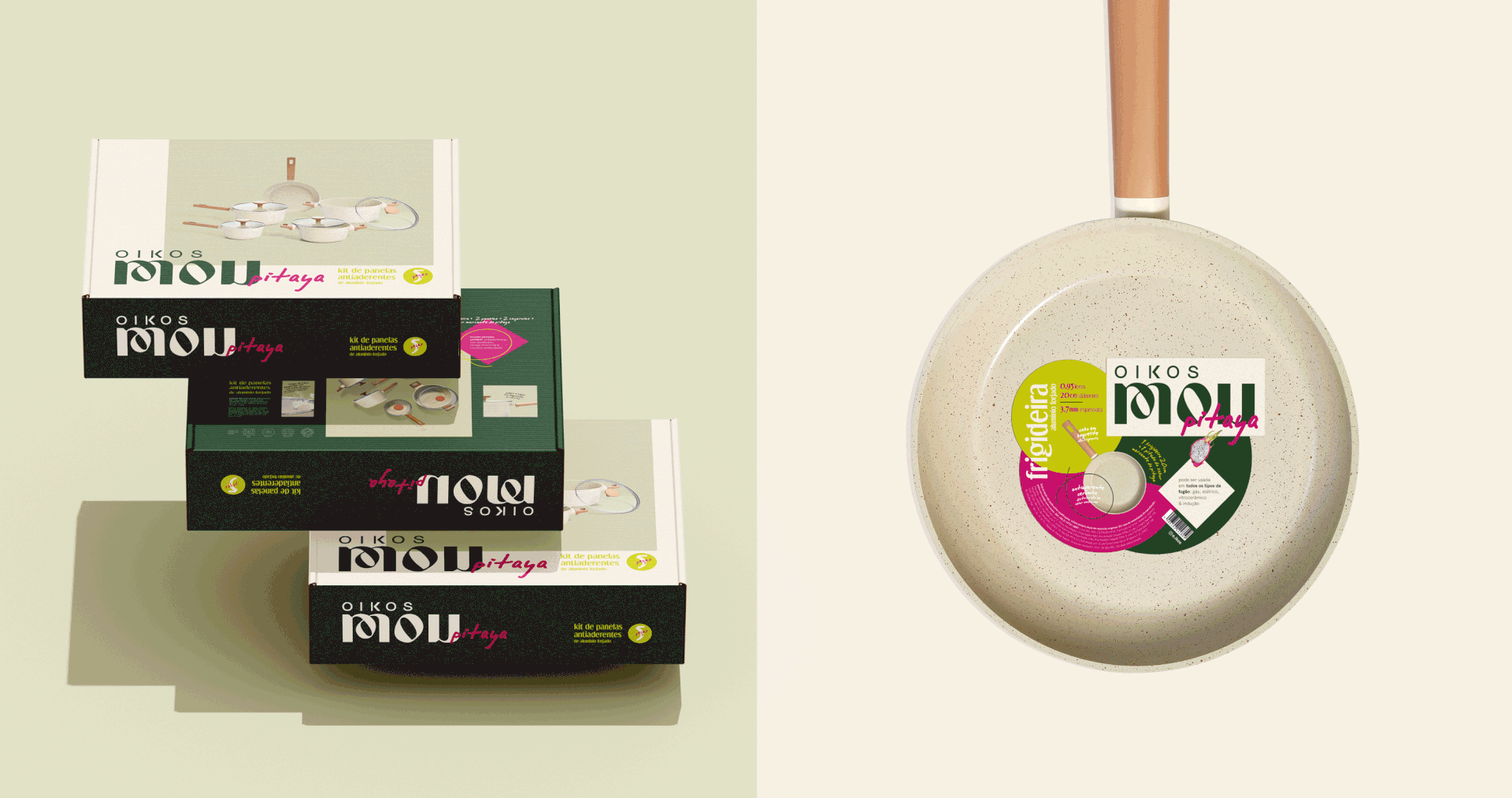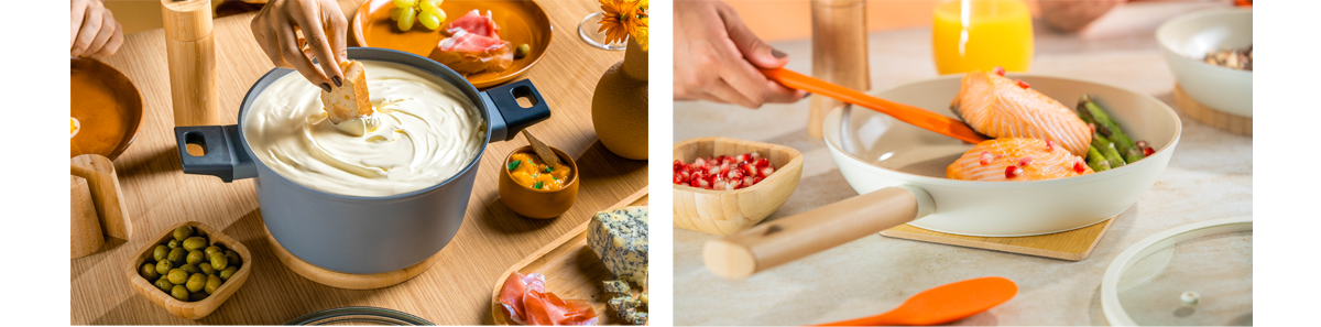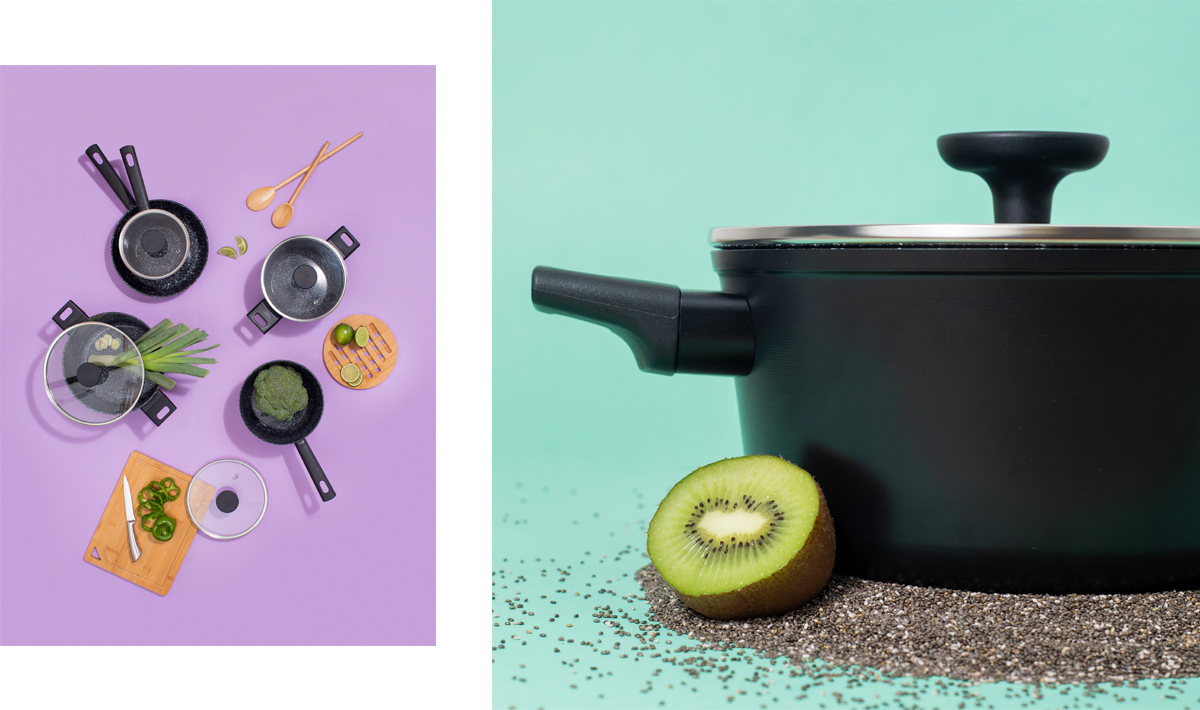 MOU is a cookware line launched by the Oikos brand, combining quality with modern and distinctive design. Available in four models, the line was visually translated into four flavors. MOU is a line that evokes affection and is here to become the household favorite. Its visual universe brings a unique approach to the category, more artistic, creative, and playful, blending modernity with elegance and ensuring its differentiation from everything else already available on the market.