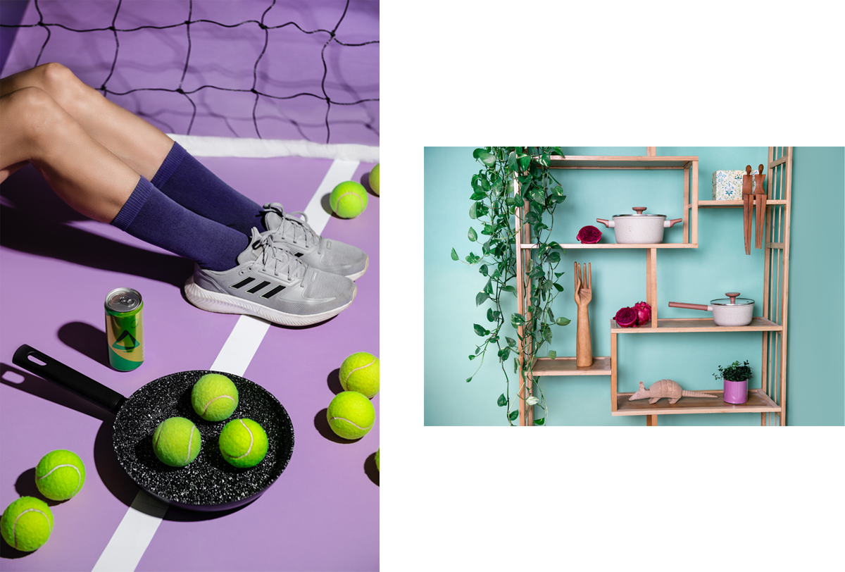 First one reflected one of the brand’s concepts: the darling pot that accompanies you everywhere, every moment of your day. So, we imagined it in different moments of your day. Some were totally plausible, like serving as an ice bucket near a pool, while others were completely unthinkable, like being a tennis racket or part of a shelf decor. All of this reflects the clever humor of the oikos brand.